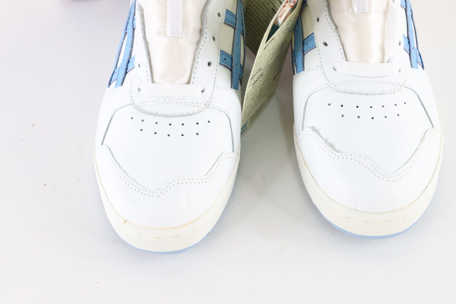 New with defects. Has yellowing and the heel material is cracking. Wearable but not recommended as the heel material will crack. Box will have wear/rips