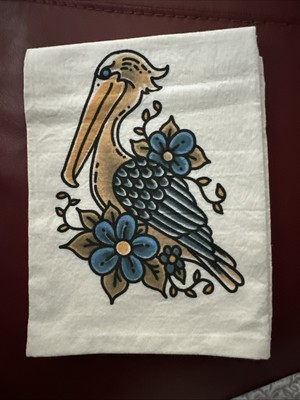PELICAN TATOO 1pc KITCHEN TOWEL 100% COTTON/FLOUR SACK 26”x26” OVERSIZED NEW