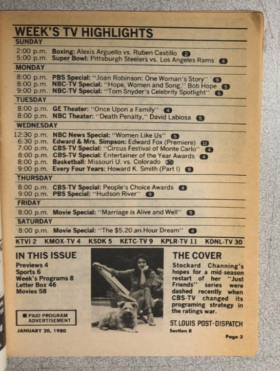 TV MAGAZINE St Louis (MO) Post-Dispatch and 50 similar items