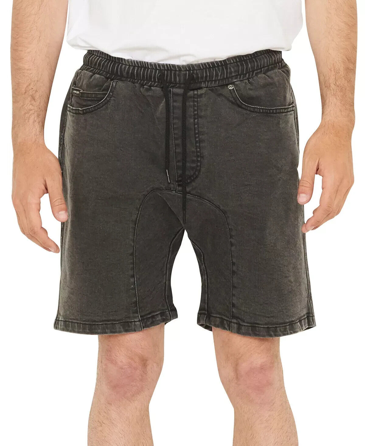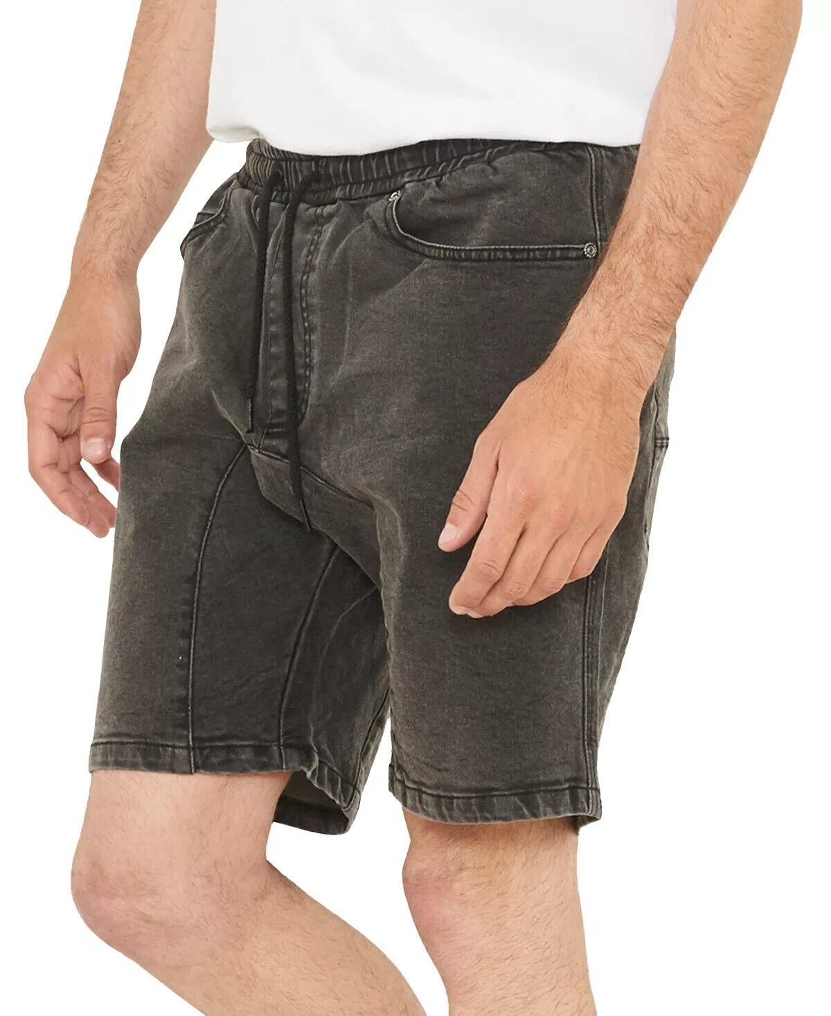 nANA jUDY Men's The Jogger Regular-Fit Stretch Denim Shorts Vintage Black-Medium