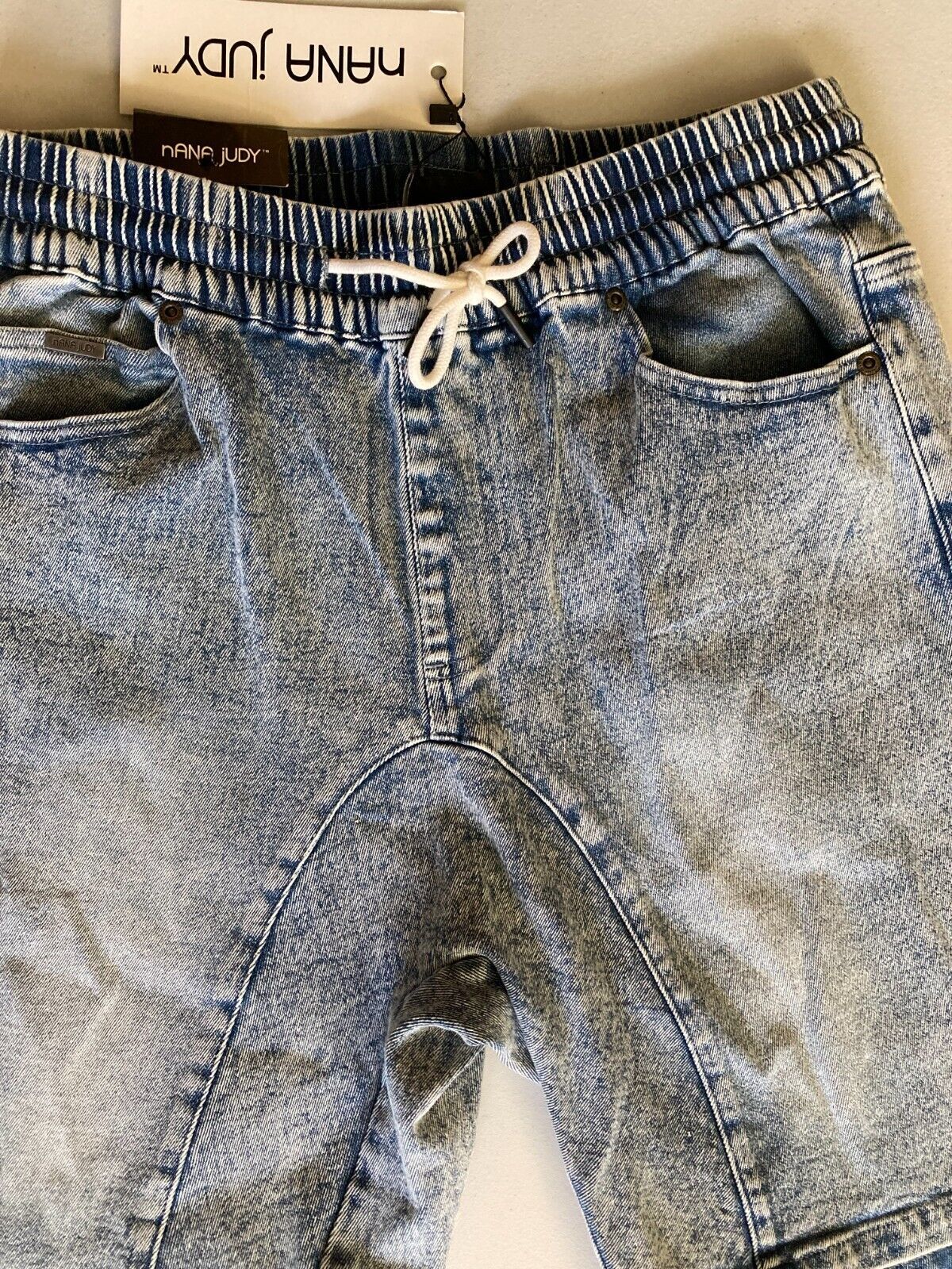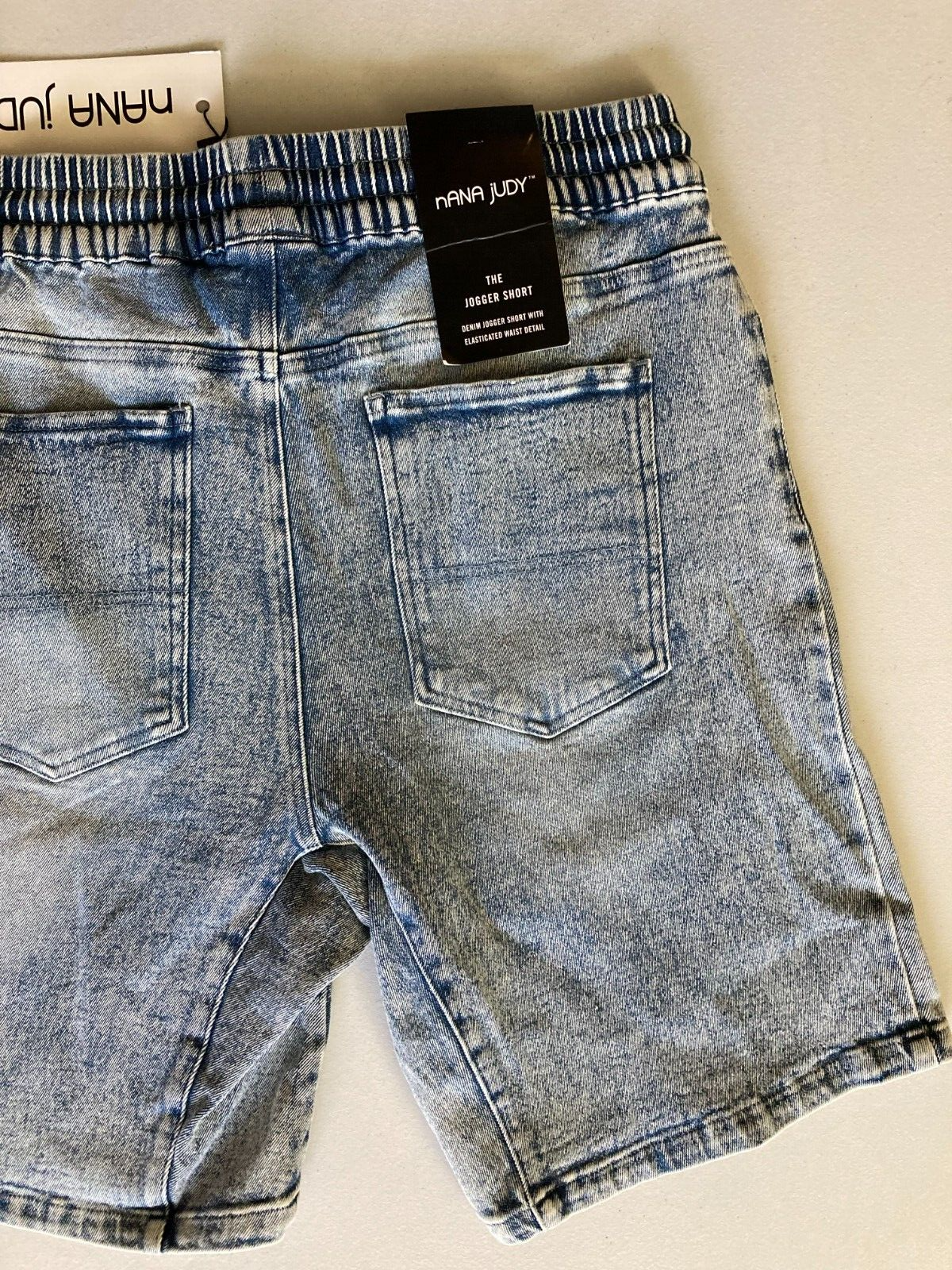 Soft stretch denim and an adjustable drawstring waistband make The Jogger shorts from nANA jUDY a smart choice for casual style and comfort.