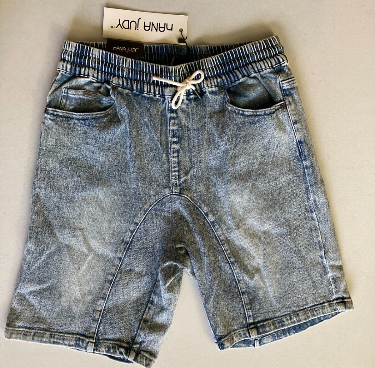nANA jUDY Men's The Jogger Regular-Fit Stretch Denim Shorts Sunbleach Blue-Med