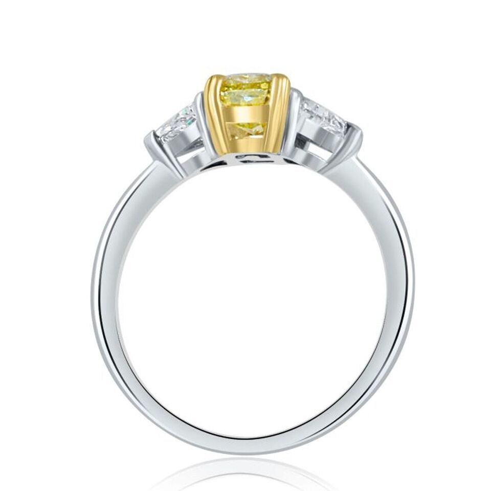 Authenticity Guarantee 18K Gold 3 Stone GIA Intense Yellow Cushion Diamond E...
