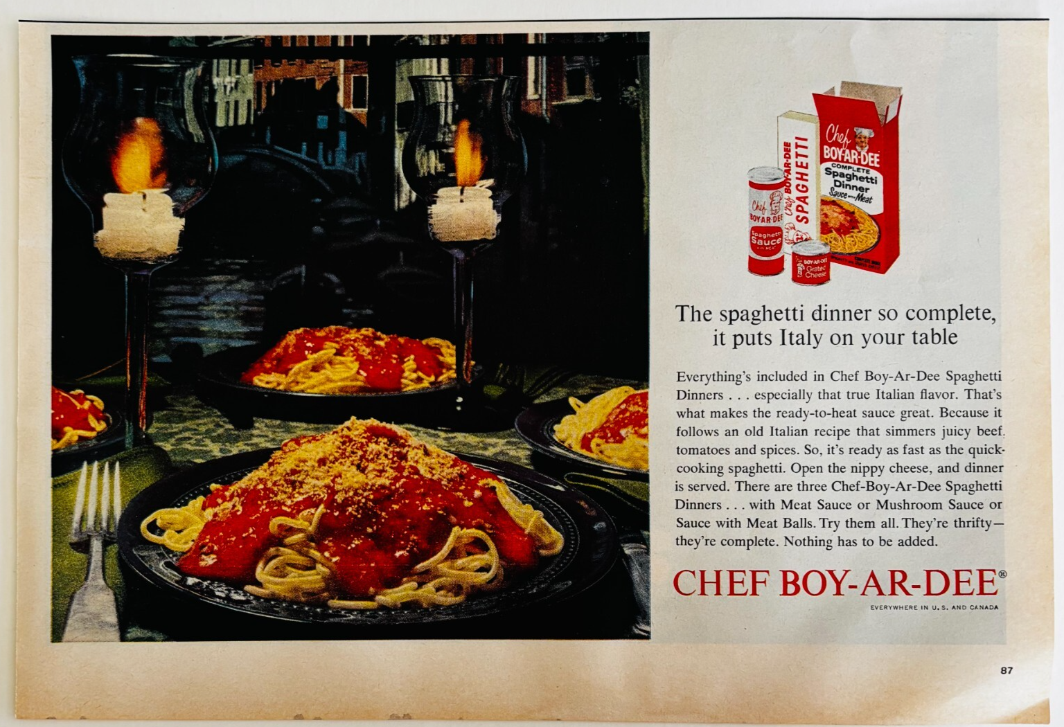 1963 Chef Boy-Ar-Dee Advertisement Spaghetti Dinner Mix Pasta Vintage DWJJ17