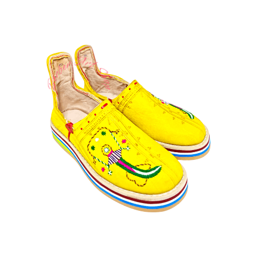 Yellow Berber Babouche with Colorful Embroidery Handmade Moroccan Slippers