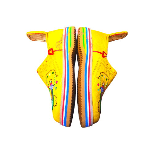 Add a pop of color and culture to your wardrobe with these Yellow Berber Babouche Slippers, beautifully embroidered and handcrafted in Morocco. These traditional Amazigh slippers blend vibrant design with everyday comfort, featuring a joyful yellow leather base and playful multicolor stitching.