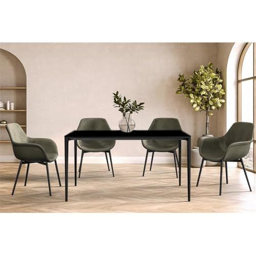 LeisureMod AVO Mid-Century Modern 55" Rectangular Dining Table with Black Alumin