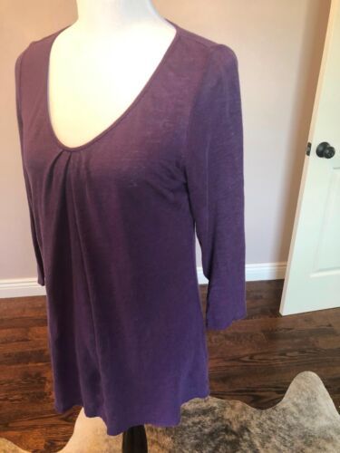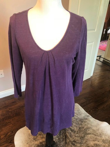 EILEEN FISHER Scoop Neck Purple 100% Linen Tunic Top SZ S EUC