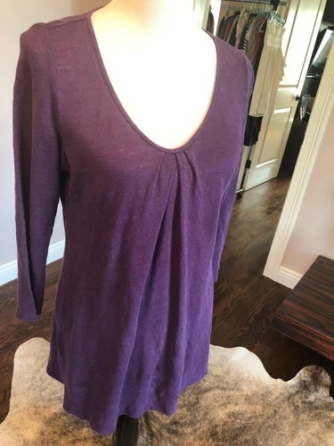 This EILEEN FISHER scoop neck purple 100% linen tunic top is in excellent used condition with no signs of damage of any kind. It features:
