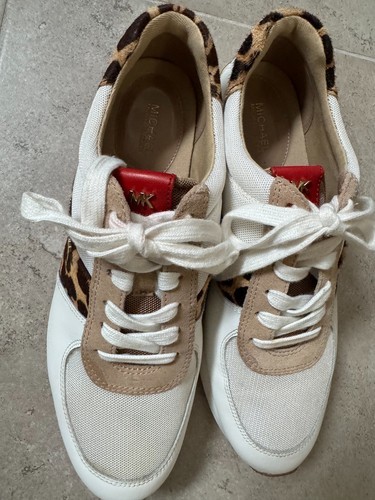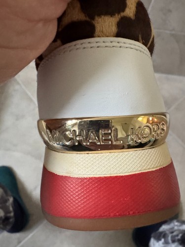 Michael by Michael Kors Allie Trainers White Red Animal Print SZ 8.5 M