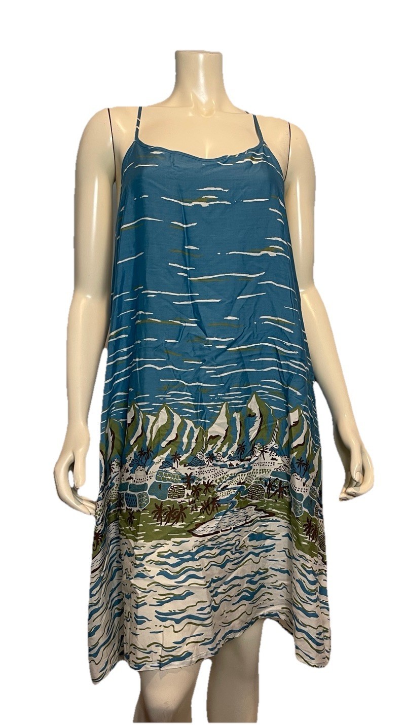 Pataloha Blue, Green, White Brown Island Print Racer Back Dress Size XL