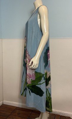 Anthropologie Blue, Green, Purple Floral Print Sleeveless Midi Dress