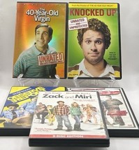 This 5-DVD lot features a collection of comedy movies starring Seth Rogen, including titles like "The 40-Year-Old Virgin," "Knocked Up,? ?Observe and Report,? ?Superbad,? and ?Zack and Miri.? With a focus on hilarious and relatable comedic moments, this set is perfect for fans of Seth Rogen's comedic talent. Each DVD is in the standard DVD format, making it easy to enjoy these classic films at home. Perfect for a movie marathon or a night in with friends, this lot offers a variety of laughs and entertainment for anyone who enjoys Seth Rogen's comedic style.