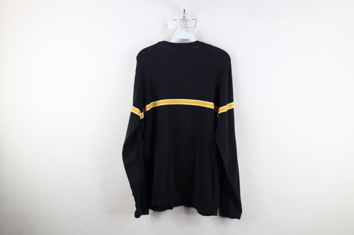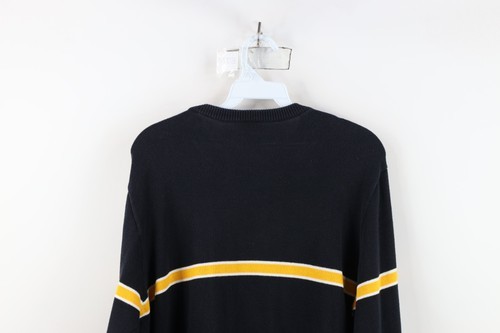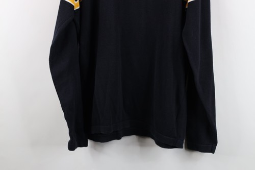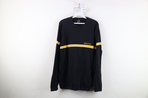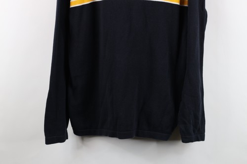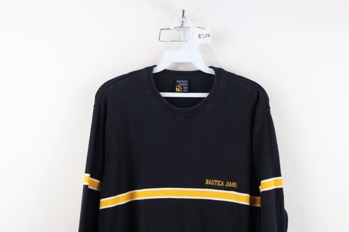 Vintage 90s Nautica Mens Large Faded Spell Out Striped Cotton Knit Sweater Blue