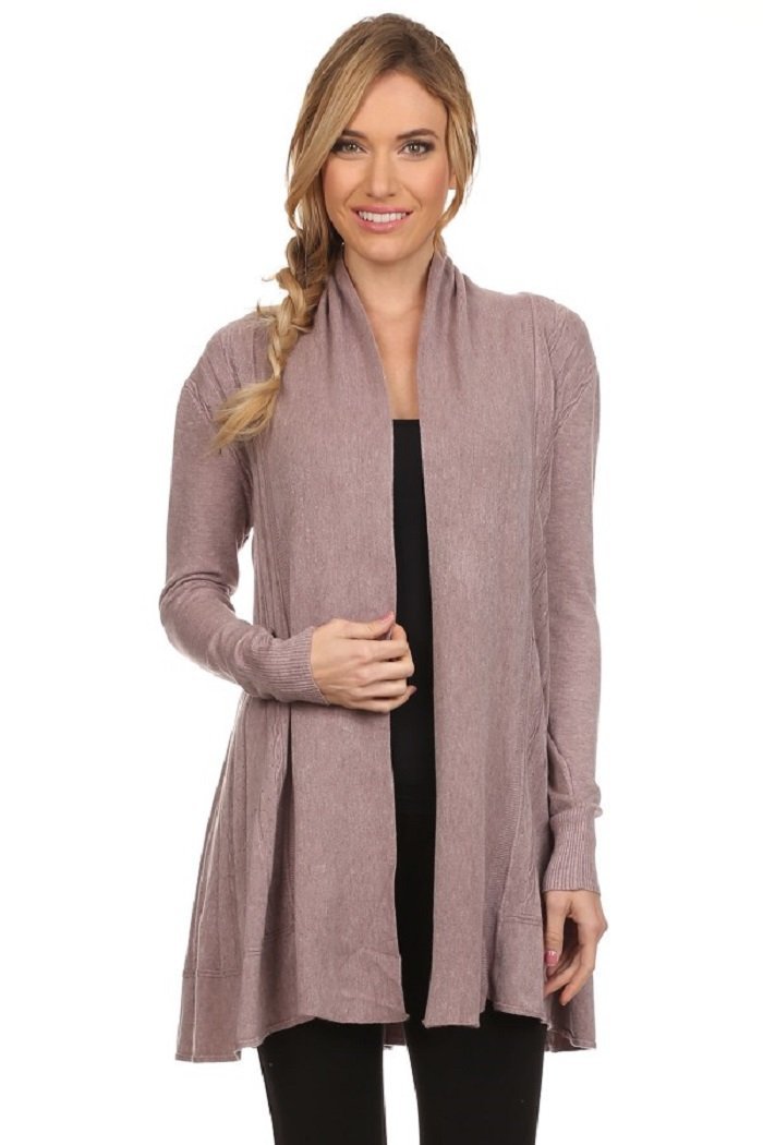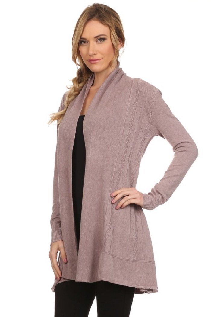 Jessica Moretti Women's Knit Solid Color Draped Neck Open Front-Cardigan