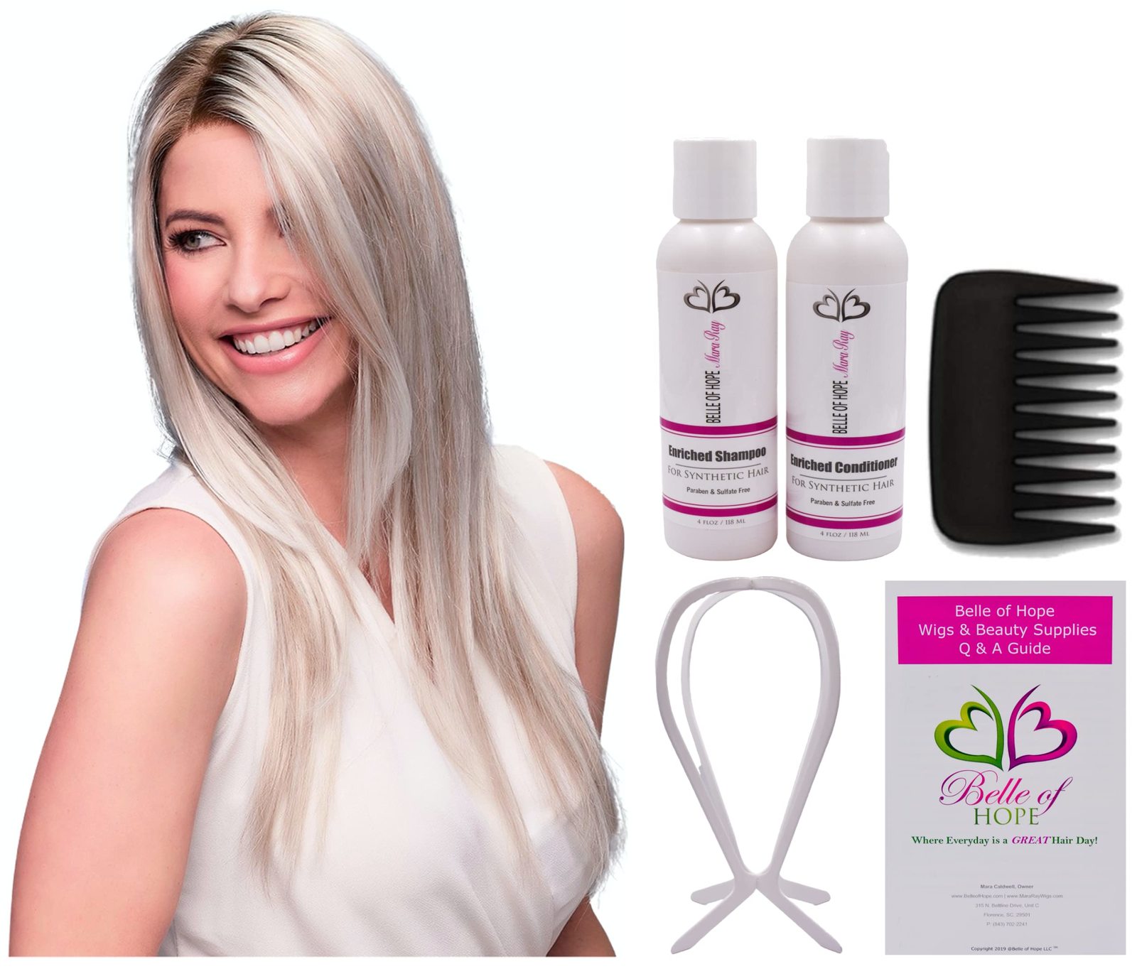 Product description: 6PC Bundle: ZARA LITE Lace Front Mono Top Synthetic Wig, 4oz Mara Ray Enriched Shampoo Conditioner, Wide Tooth Comb, Plastic Wig Stand, and 19 Page Belle of Hope Guide. Zara Lite is a light hair density wig featuring their exclusive SmartLace Lite cap. Her long, stylish layers achieve a new level of extravagance with its nearly invisible lace front that extends from ear to ear for added realism. The monofilament top, 100% hand tied section and silicone nape complete the wish list of the most demanding hair wearers.
