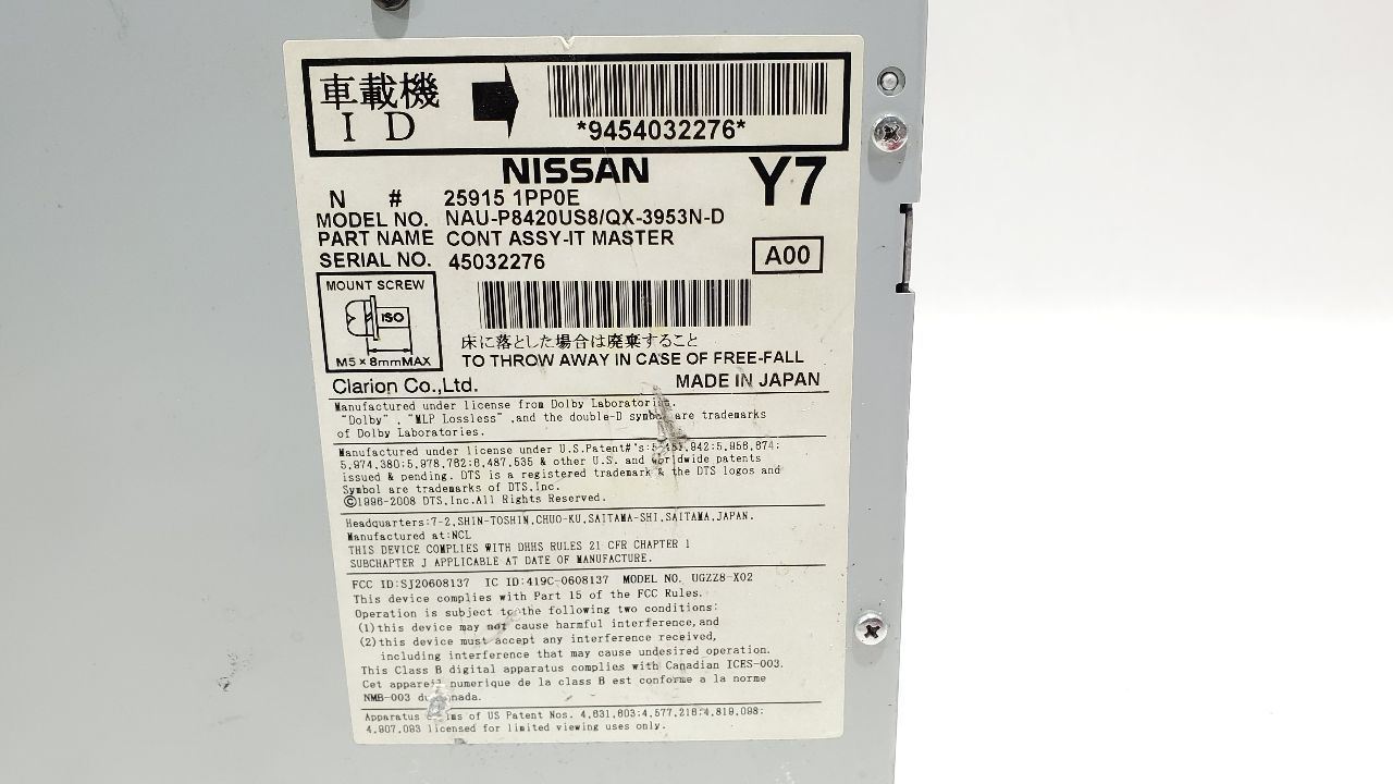 INFINITI Q70 16 CD player and receiver (console), w/Bose audio system, thru 10/31/15