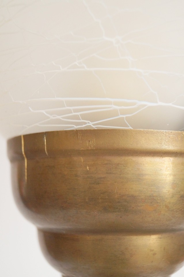 Important: We recommend using only LED lamps (filament bul!) For each of our lights. In addition to that of up to 12 times higher efficiency, the very low heat development of an LED bulb ensures the lifespan of the electrical system and the precious original glasses of its lamp. LED lamps available everywhere or here . Please also note: It is a used and/or ancient object that, despite processing and cleaning, has clear signs of age and use. If you are looking for a "new" and high-gloss lamp in the hardware store style, you are clearly wrong here! Thank you for your understanding. Our luminaires are all unique and stand up to the same appearance of the same appearance of the famous "brass lamps from the capital", where ultimately every lamp is available a thousand times. You can only