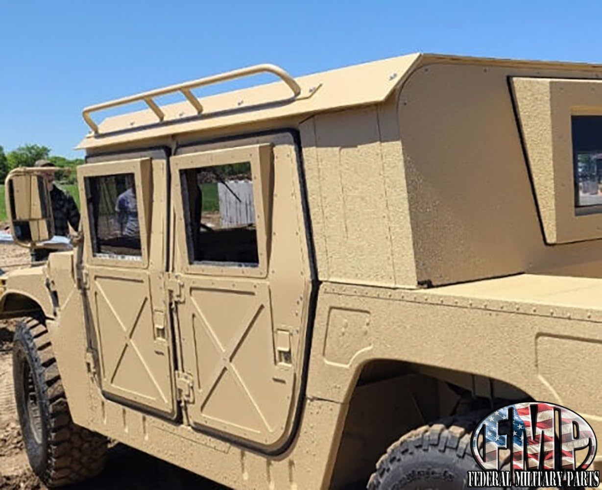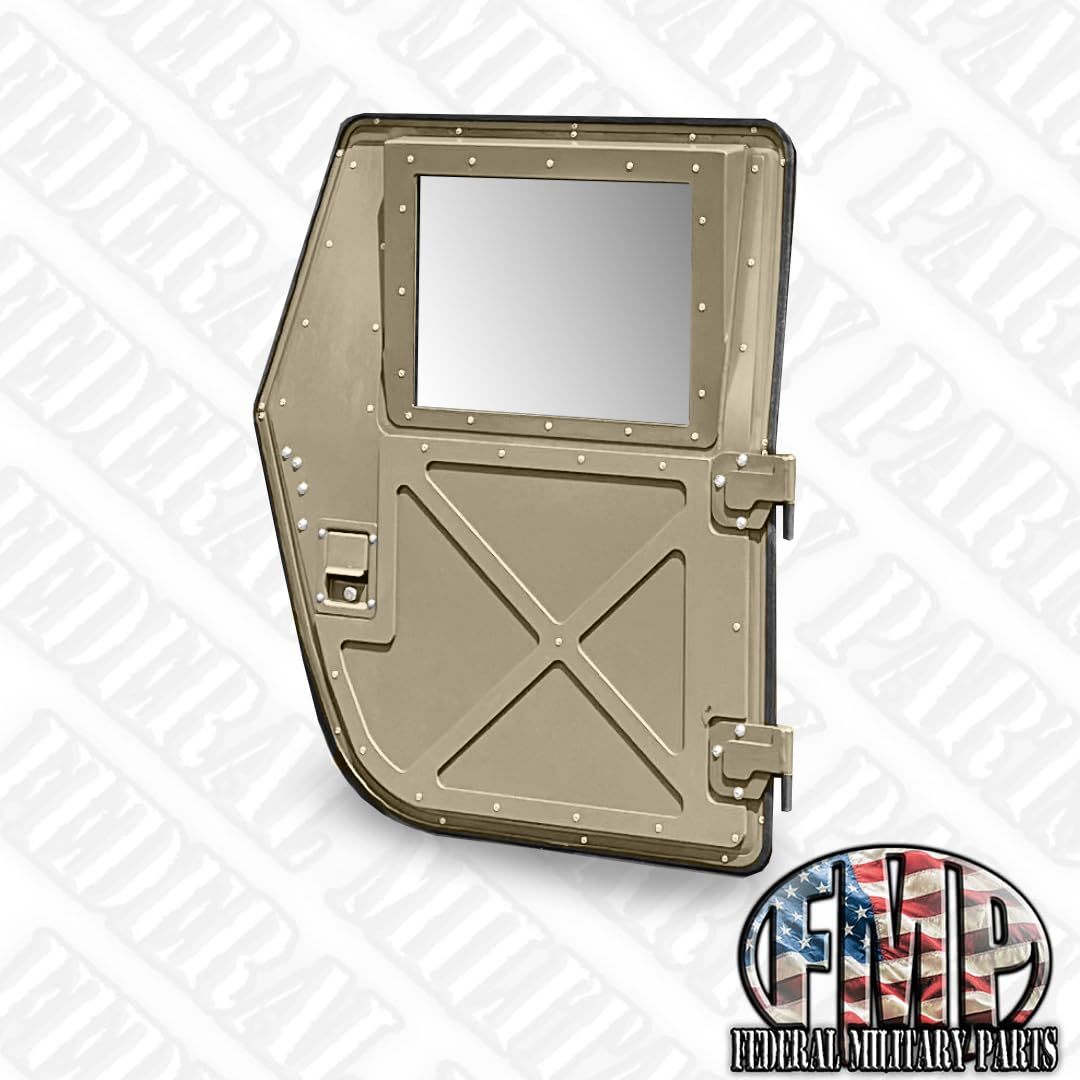 Introducing the Hard X-Door: Ultimate Defense and Quality for Your Military Humvee Upgrade your military Humvee with the unparalleled strength and reliability of the Hard X-Door, proudly made in America using meticulously crafted American-manufactured components. These top-tier, fully assembled doors are designed to meet the demands of the toughest missions, ensuring peak performance and unmatched security. Key Features: Second Generation Design: Our Hard X-Doors represent the pinnacle of innovation, featuring double-strength welded hinges that guarantee steadfast durability even under the harshest conditions. Unyielding Armor: Crafted from double-thick solid steel twelve-gauge armor, these doors provide an impenetrable shield, offering unrivaled protection to you and your team. Reinforced Hinges: Interior hinge reinforcement plates have been integrated to fortify the door's structure, extending the lifespan and reinforcing the resilience of the doors. Stainless Steel Hardware: Every detail counts when it comes to reliability. That's why our doors are equipped with all-stainless-steel hardware, ensuring resistance to corrosion and maintaining peak performance over time. Seamless Seal: The double-thick 3M door gasket seal not only provides an airtight barrier against the elements but also acts as a buffer against noise, dust, and other environmental factors. Advanced Locking Mechanism: Your security is our priority. The exterior locking door handles offer quick and easy access for authorized personnel while ensuring a dependable lock to prevent unauthorized entry. Versatile Windows: Experience enhanced visibility with vertically sliding windows equipped with DOT-approved, clear laminated glass, ensuring optimal clarity without compromising safety. Custom Craftsmanship: Each order is tailored to your specific requests, giving you the flexibility to choose features that suit your needs. Please note that due to this customization, we cannot guarantee a specifi
