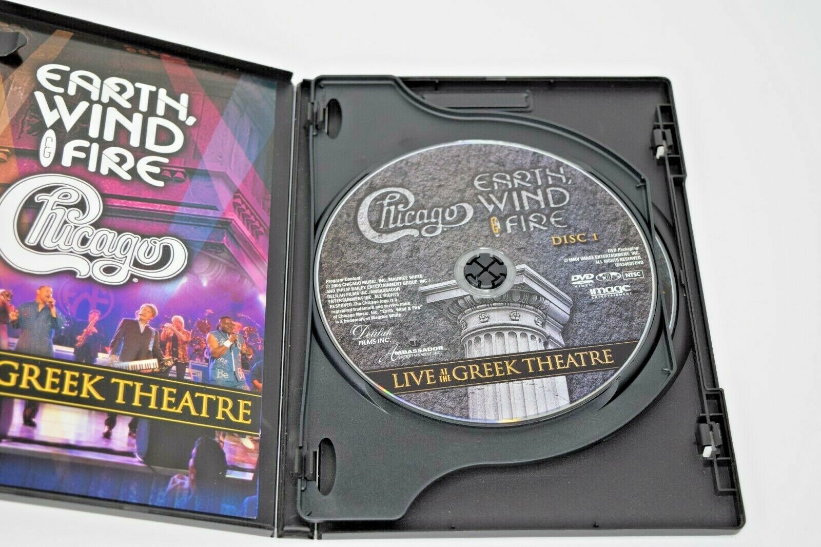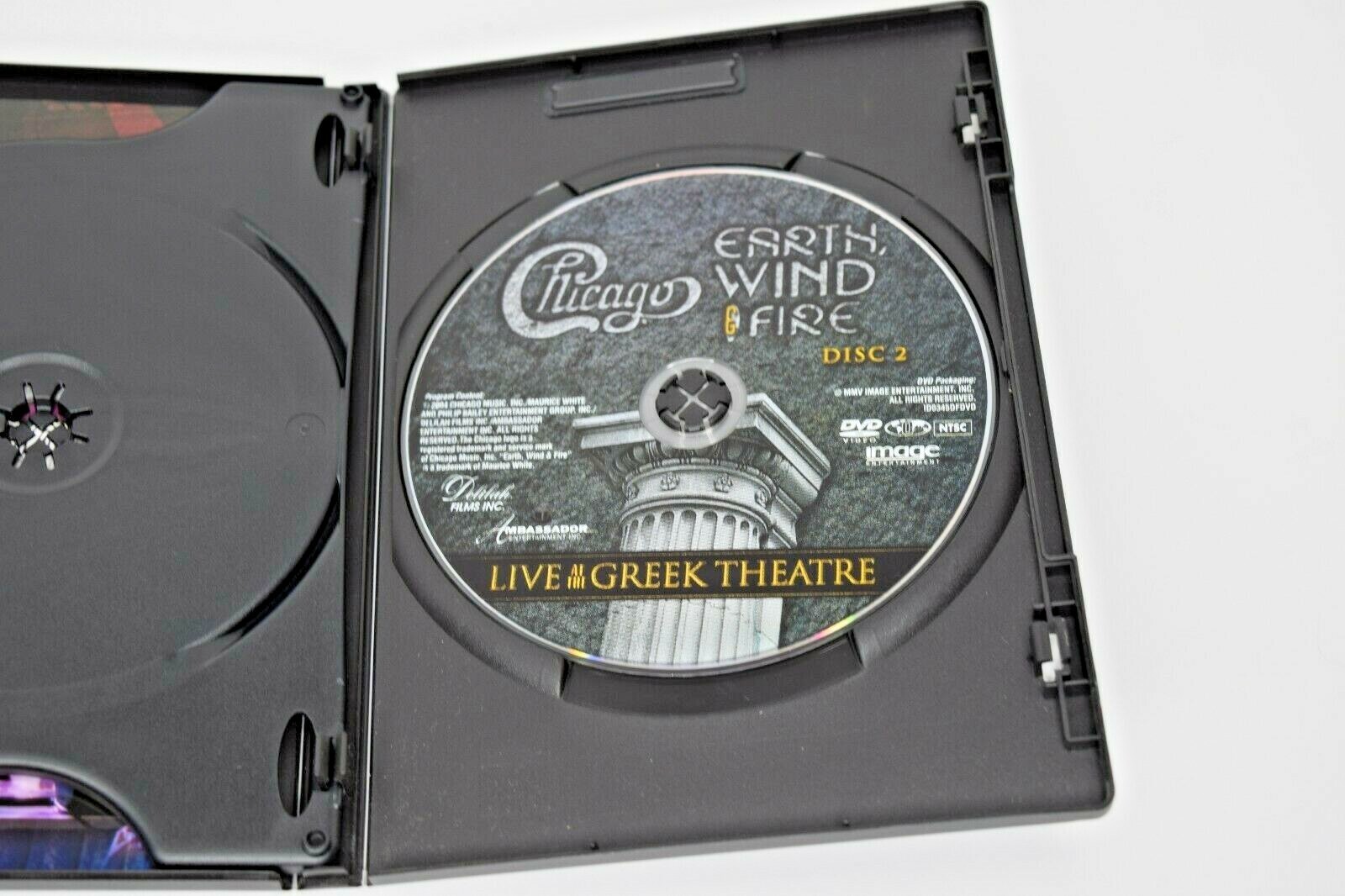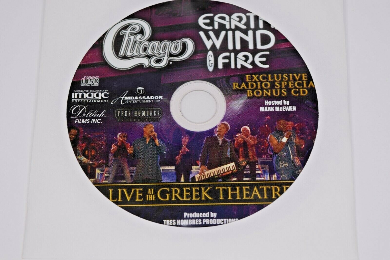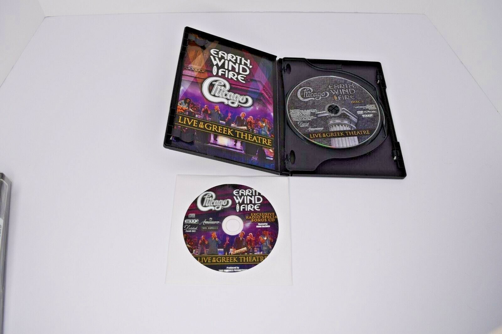 Chicago with Earth, Wind, Fire: Live at the Greek Theatre (DVD, 2005, 2-Disc Set). Pre-owned in Good Condition. Comes with a exclusive radio special bonus cd. All discs are in good shape and play fine. Comes with the insert. Case is good but has a spot of damage in the plastic towards the middle of the back. See all photos for details and condition. Will ship USPS Media Mail.