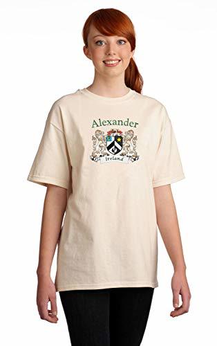 Alexander Irish Coat of Arms Tee Shirt in NaturalEvery Irish family has a story to tell, probably hundreds of stories. Your Irish coat of arms is a visual record of your family's oldest, most significant stories. Here, they're told in bright, permanent artwork on these fine-quality, all-cotton tee shirts. Authentic Irish Family Coat of Arms 100% Cotton Gildan Tee Shirt Over 25 years of Heraldry Research Printed with four color permanent process(no cracking or peeling-guaranteed) Choose from over 1000 available family coat of arms.