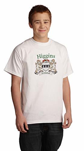 Higgins Irish Coat of Arms Tee Shirt in White. Every Irish family has a story to tell, probably hundreds of stories. Your Irish coat of arms is a visual record of your family's oldest, most significant stories. Here, they're told in bright, permanent artwork on these fine-quality, 100% cotton Gildan tee shirts. Over 25 years of heraldry research and over 1000 available Irish family coat of arms.