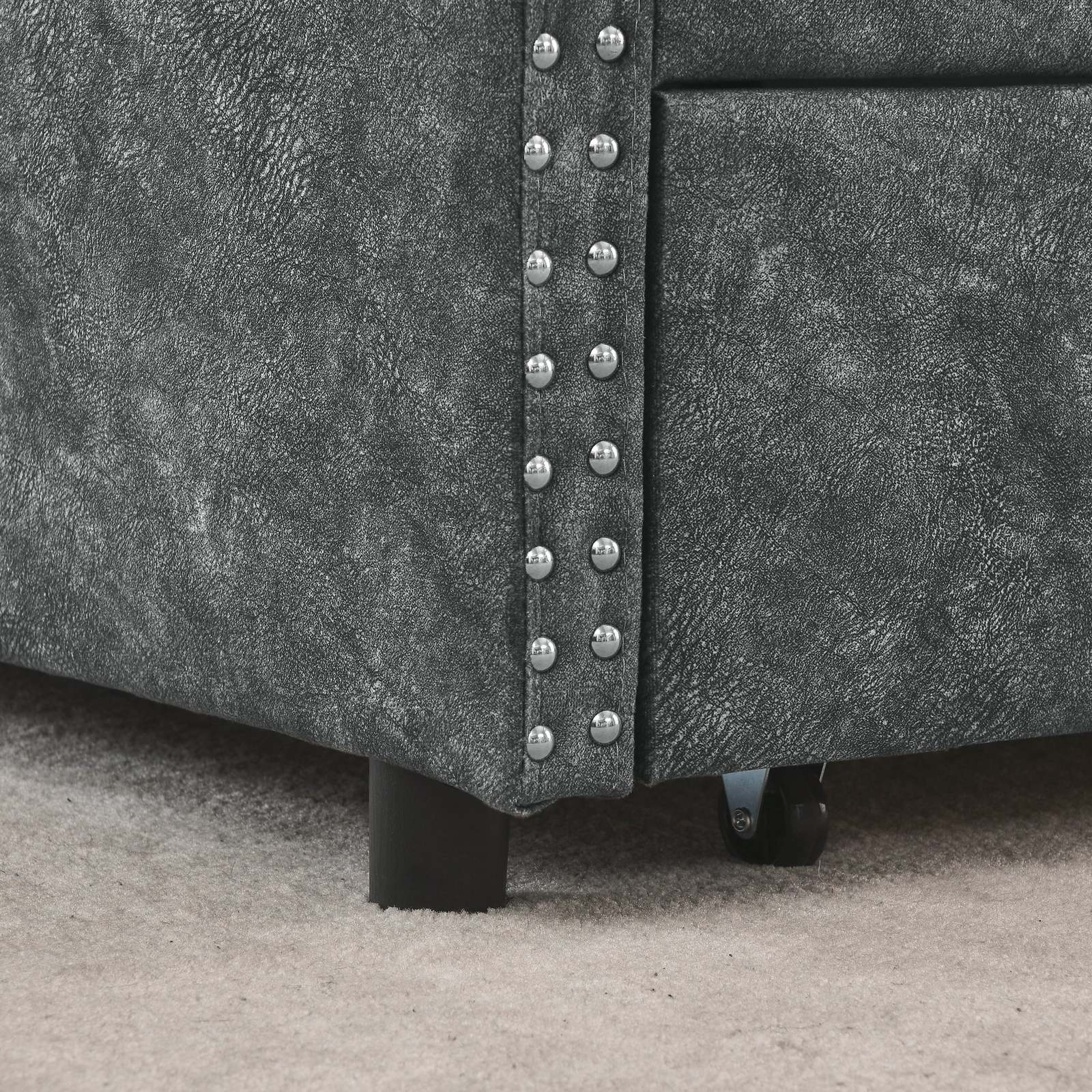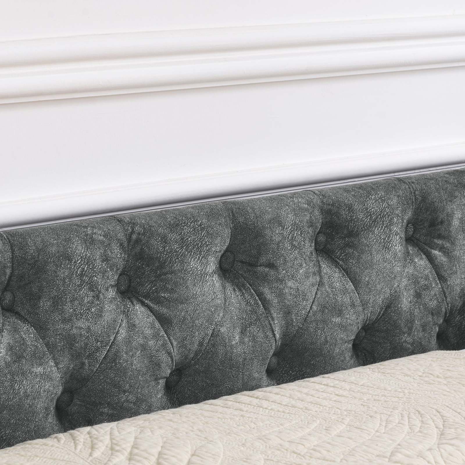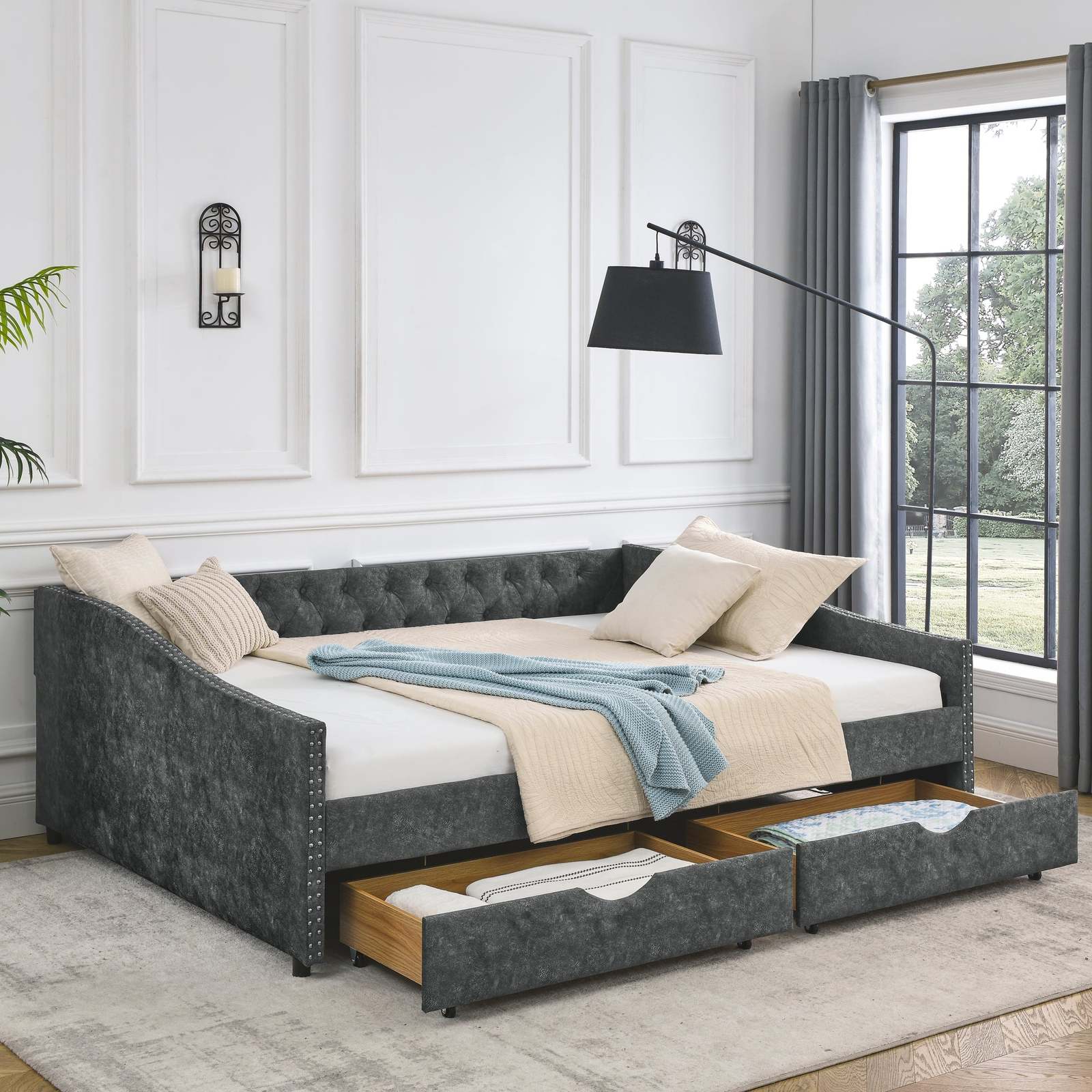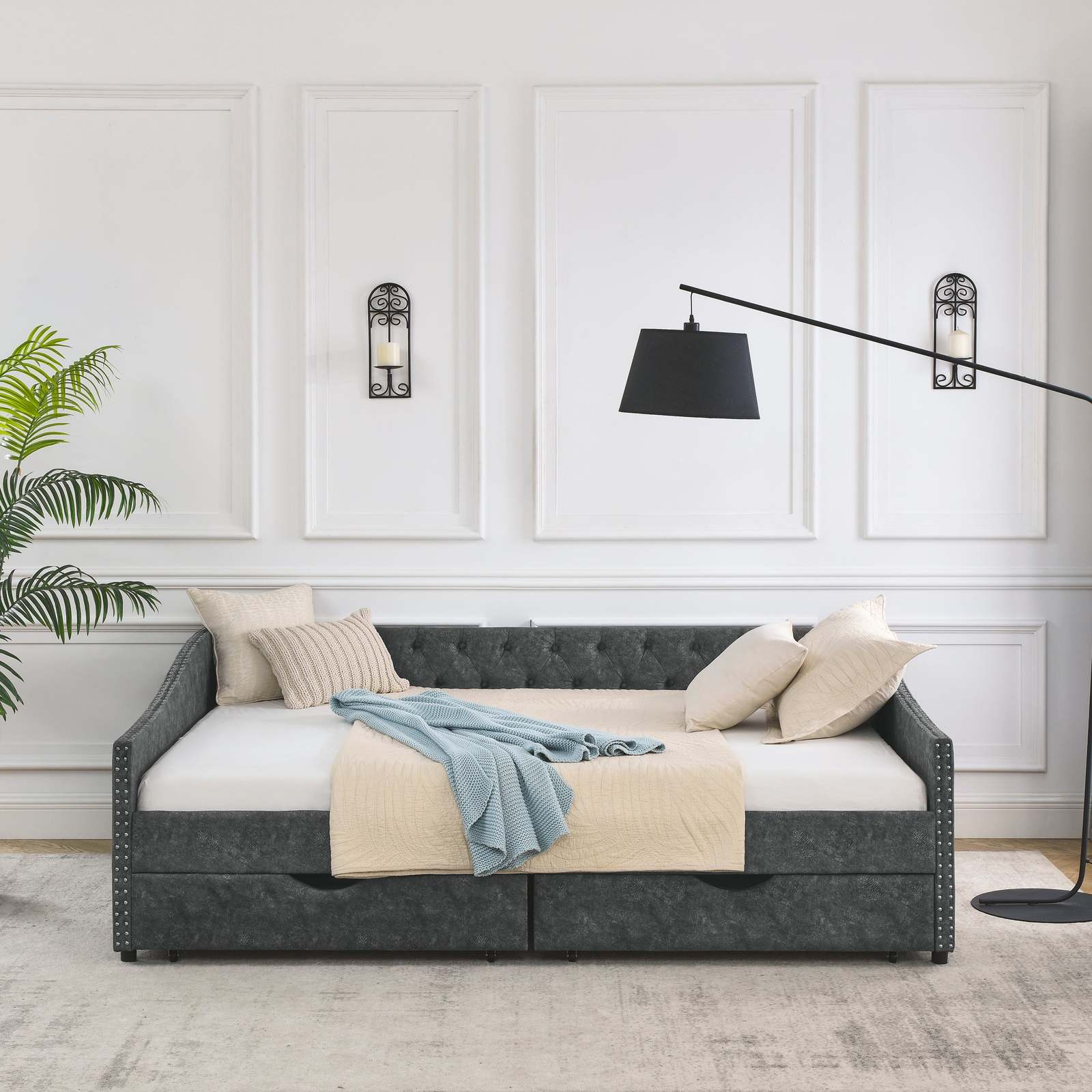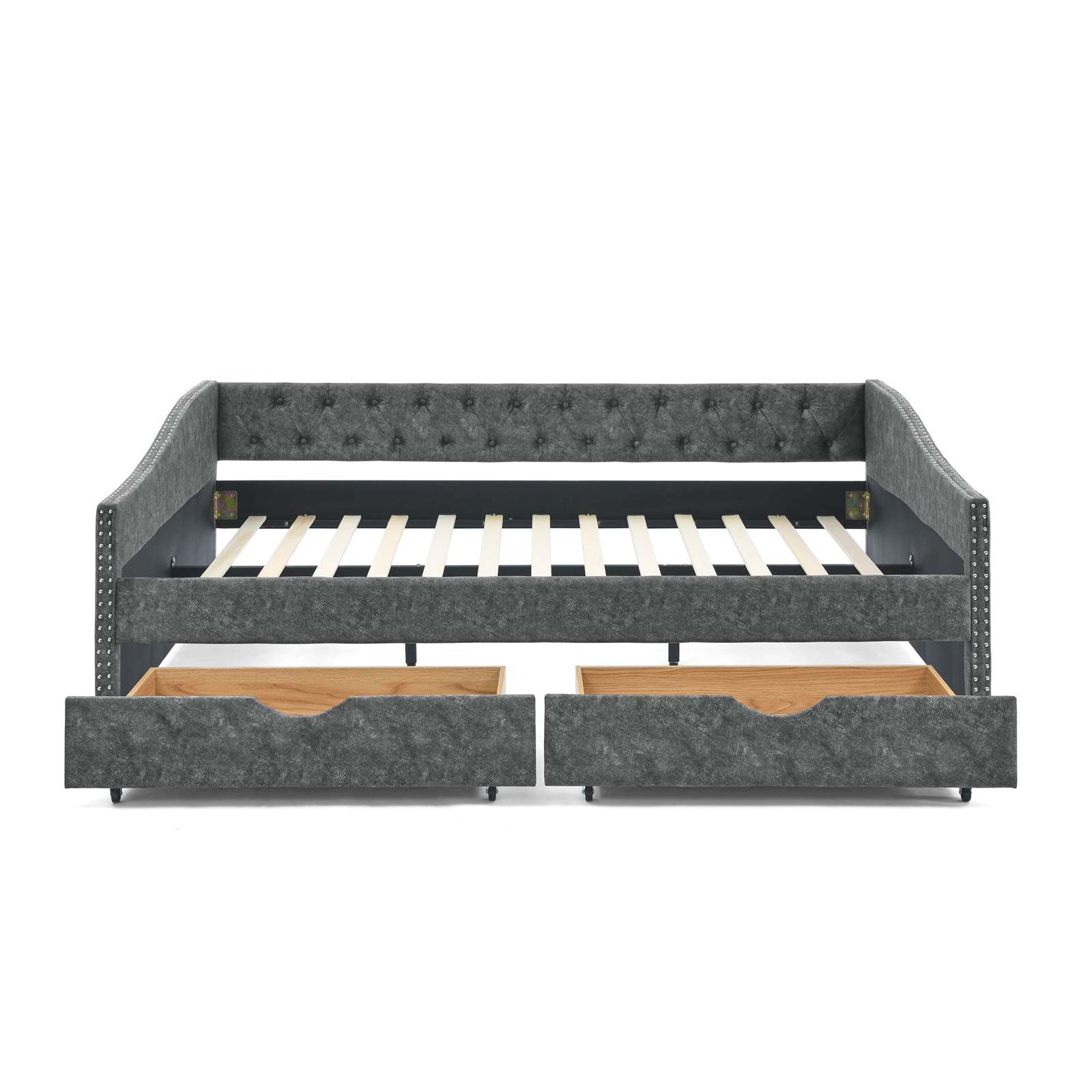 Queen Size Upholstered Tufted Daybed Sofa Bed with Drawers Grey