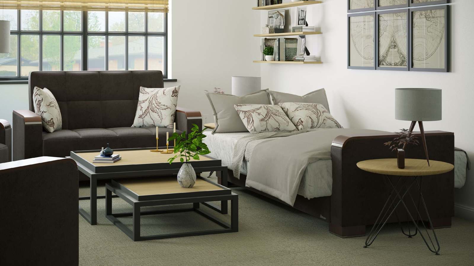 PrimeNest ZenAero Convertible Sofabed, Storage, Brown Microfiber