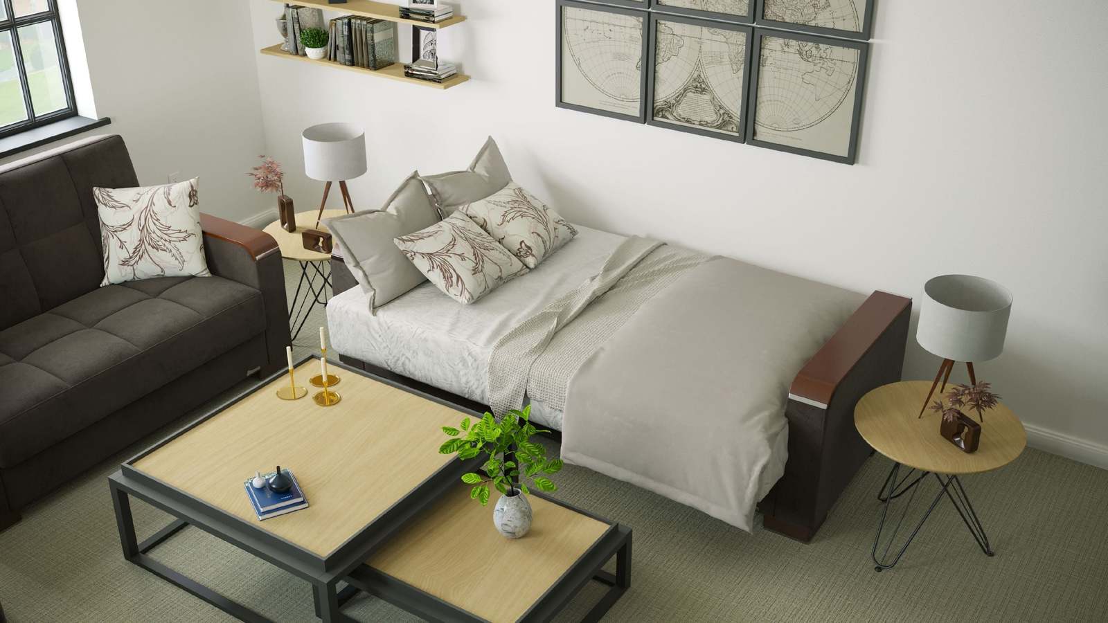 SUITABLE FOR SMALLER SPACES: The perfect size for functionality in a studio apartment, dorm room, and even in the living room of a home! Enjoy the practicality of a full sized Wood Trimmed Sofabed without dealing with any additional unnecessary bulk. Utilize our click-click technology in order to turn this Wood Trimmed Sofabed into a bed with one swift move, thus changing your living room into a guest room. *REFER TO THE IMAGES FOR DETAILED ACCURATE Wood Trimmed Sofabed MEASUREMENTS*