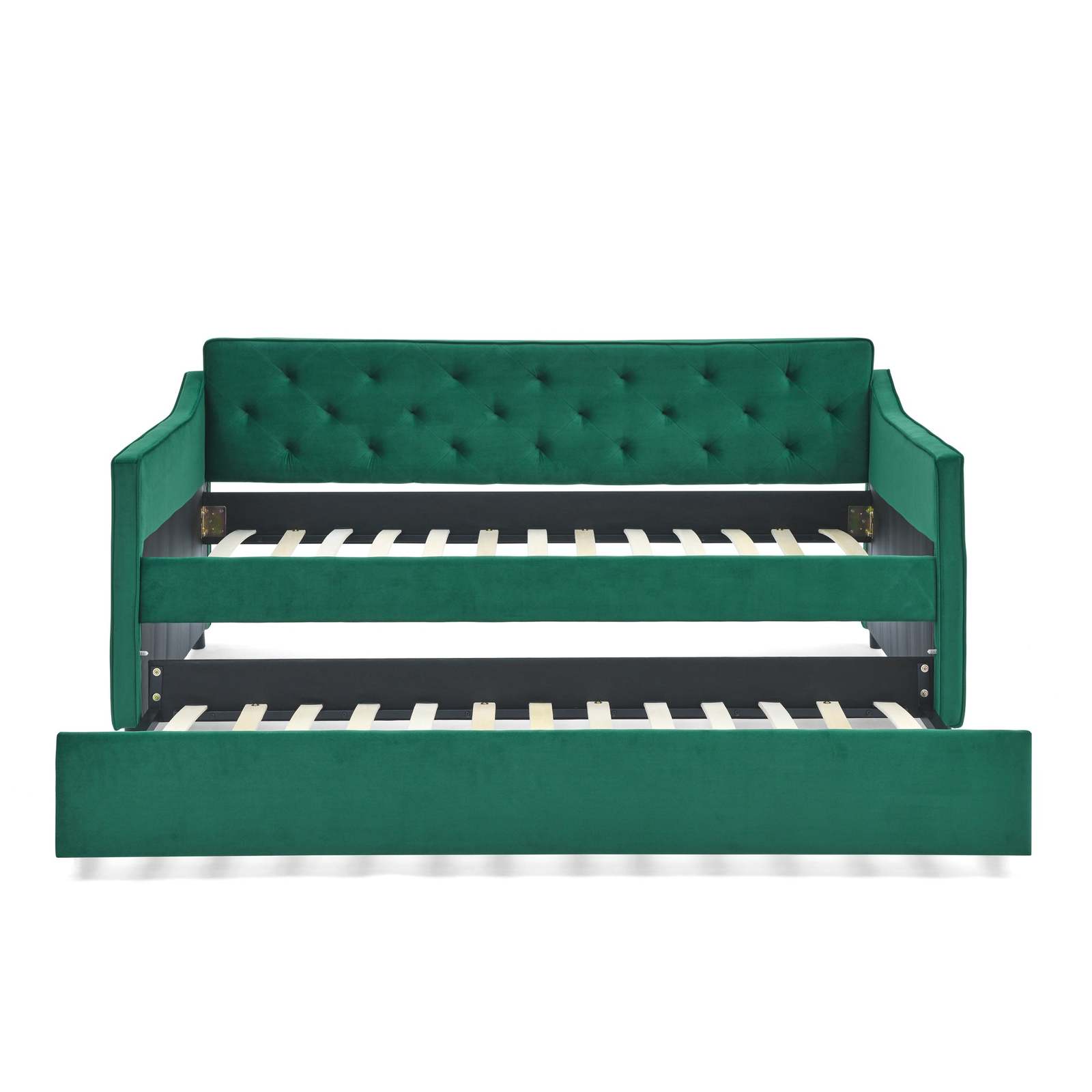 [Comfortable Experience] Foam padded sides and back that provide optimal back support and comfort.This twin-size daybed provides you with a great seating experience that ergonomically supports your back and arms. Meanwhile gorgeous soft velvet ensures you can keep cool for extended periods.