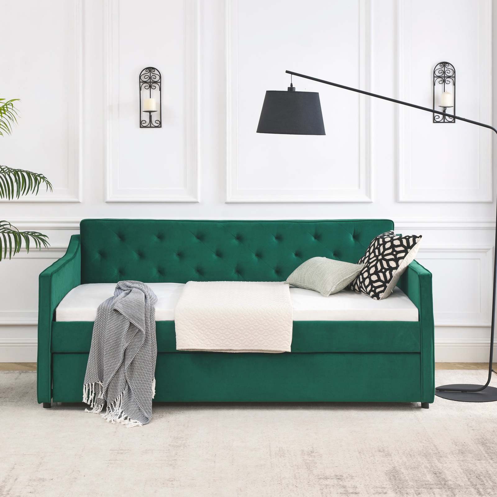 Twin Daybed with Twin Trundle - Upholstered Tufted Sofa Bed