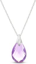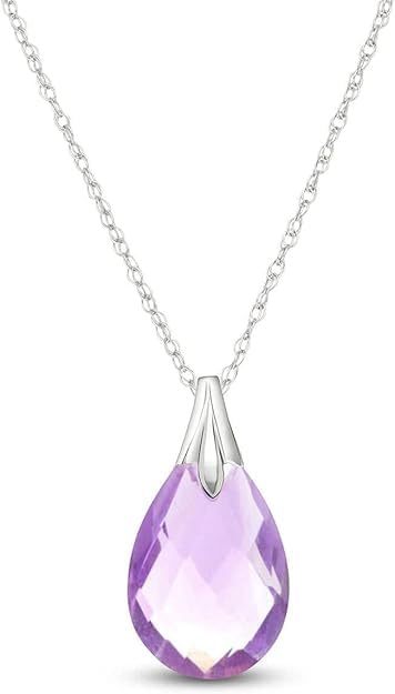 9K White Gold Purple Amethyst Teardrop Shape Pendant Necklace, Natural AAA Briol
