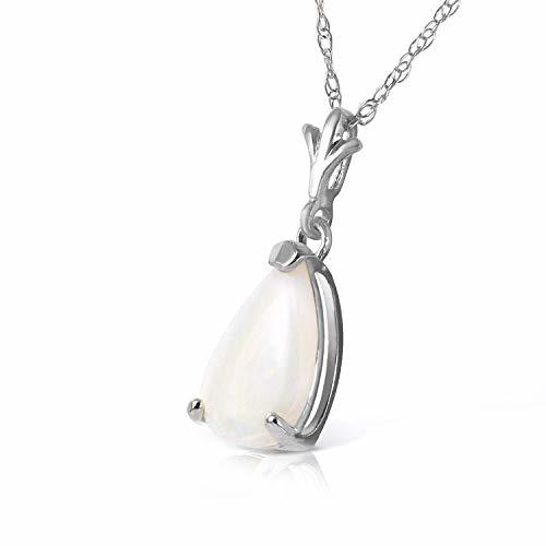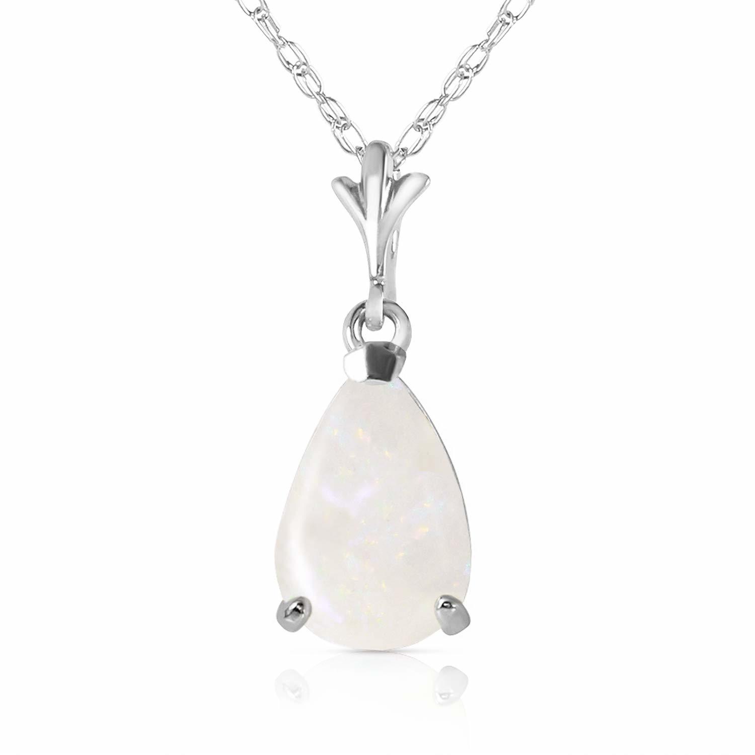 Natural Opal Pendant Necklace, 0.77 Carat, 9K Solid White Gold, Pear Shape, 18-2