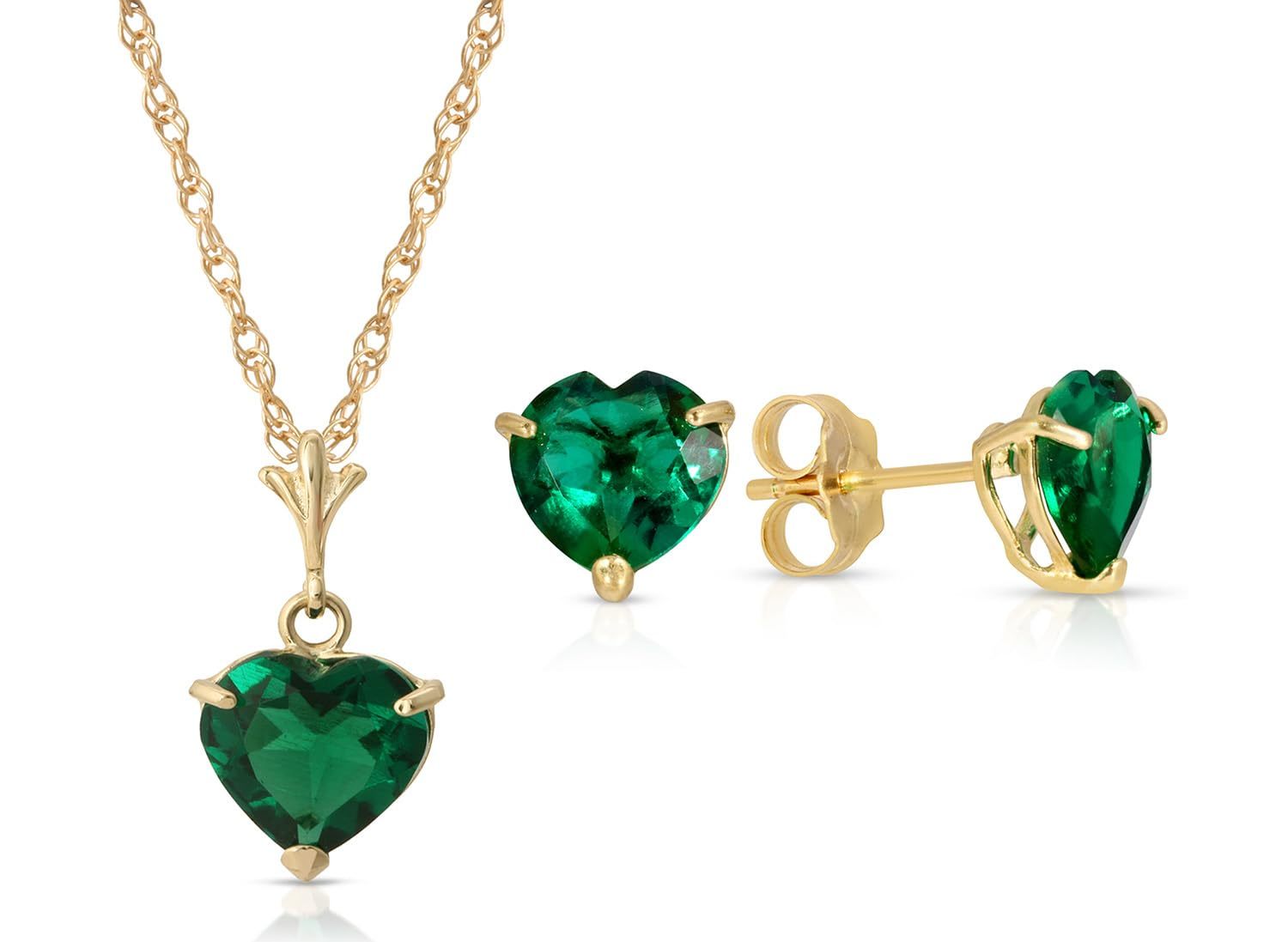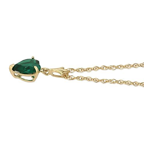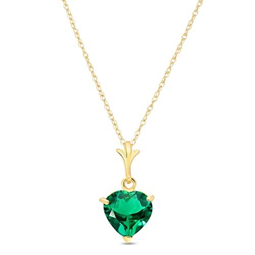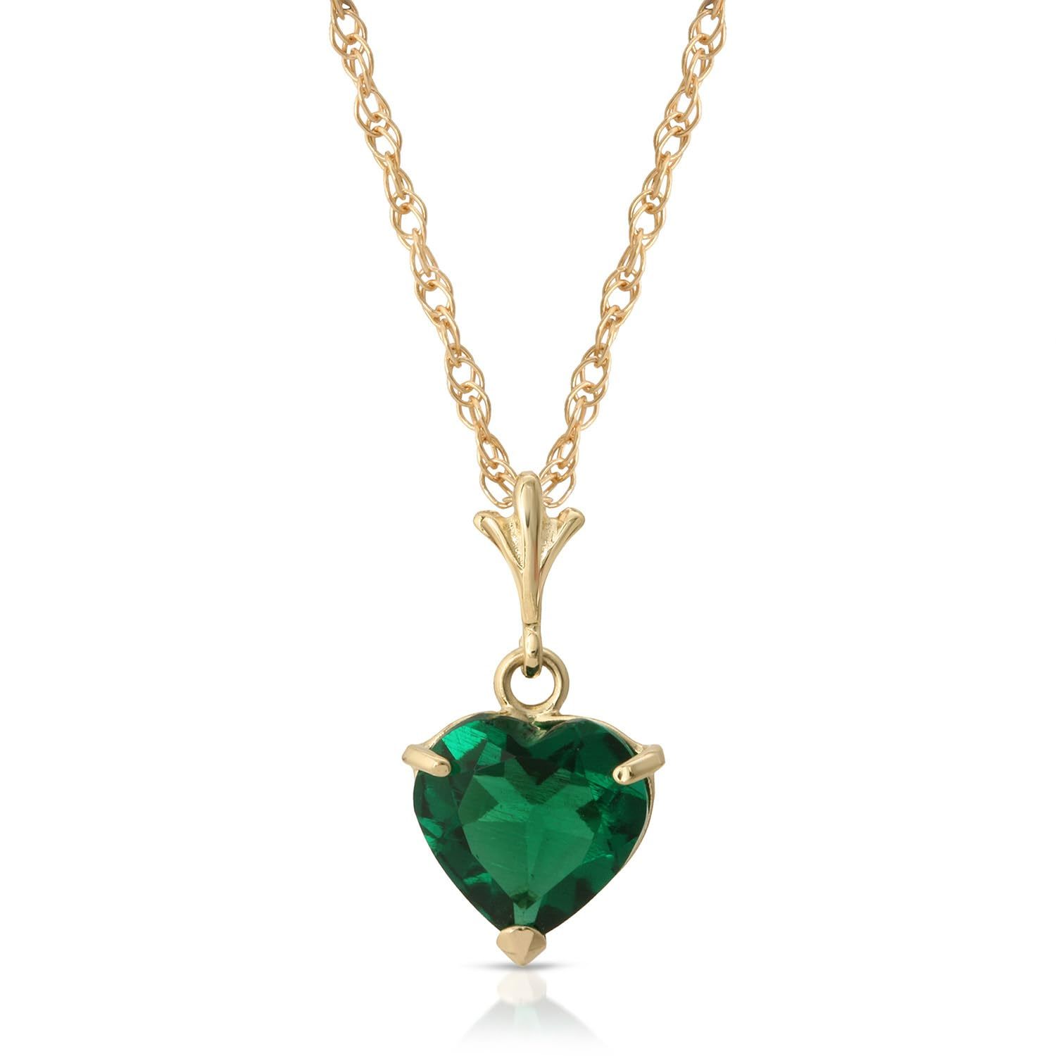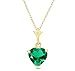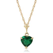 18 to 24 inches Heart Emerald Pendant Necklace, 9k Yellow Solid Gold Chain, Lab