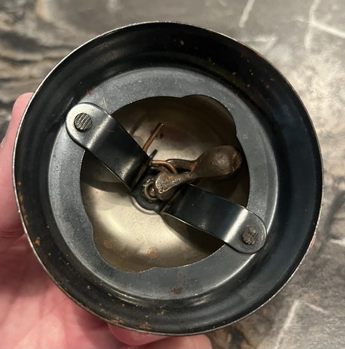 Old bell in great condition!! Has one small brownish age mark otherwise in excellent condition!! Works great!! Really nice vintage bell!!