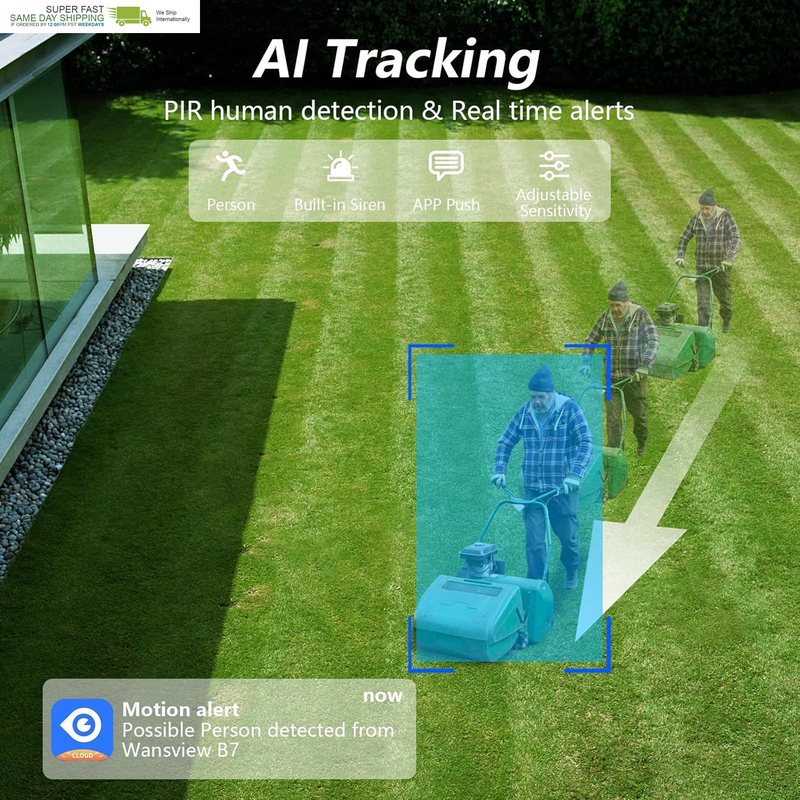 Wireless security camera outdoor auto-tracks motion, ensuring no movement is missed.