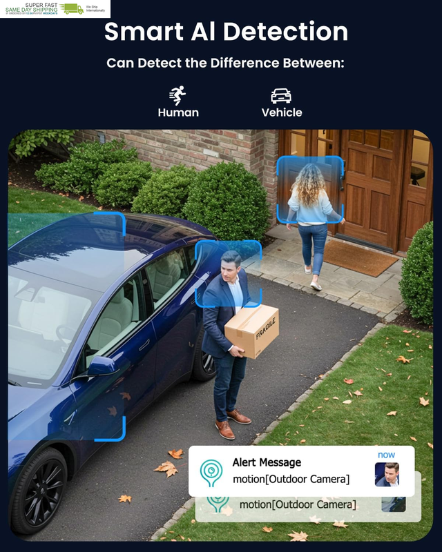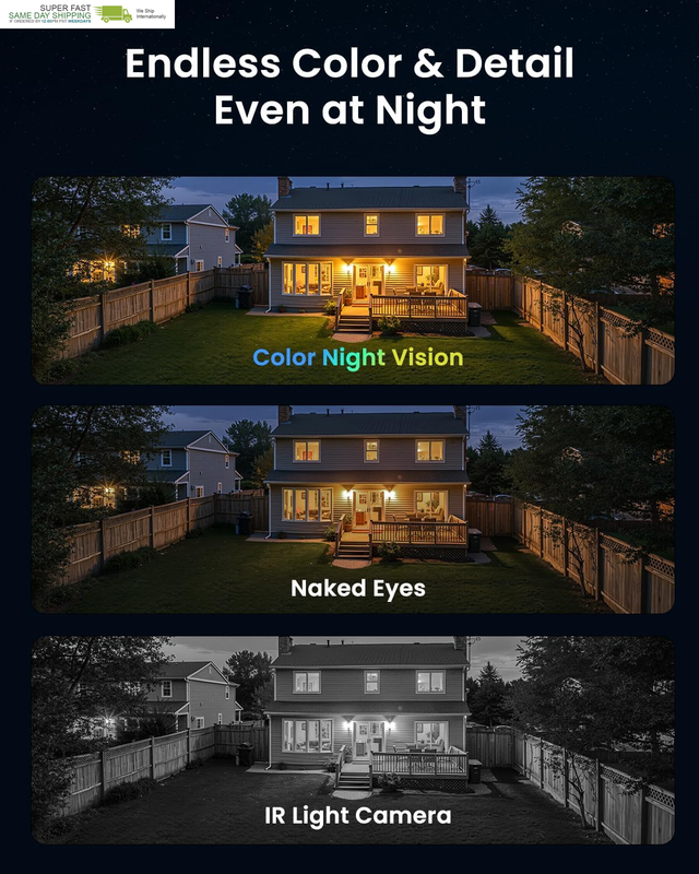 [2K Ultra HD Color Night Vision] The cameras for home security capture every event that occurs around your home in 3MP(2048x1536) resolution, which is 1.5 times more than a 1080p security camera. More than just daytime, 5 LEDs lights increase the light source by 100% compared to 2 LED lights, allowing more to be seen for excellent color night vision