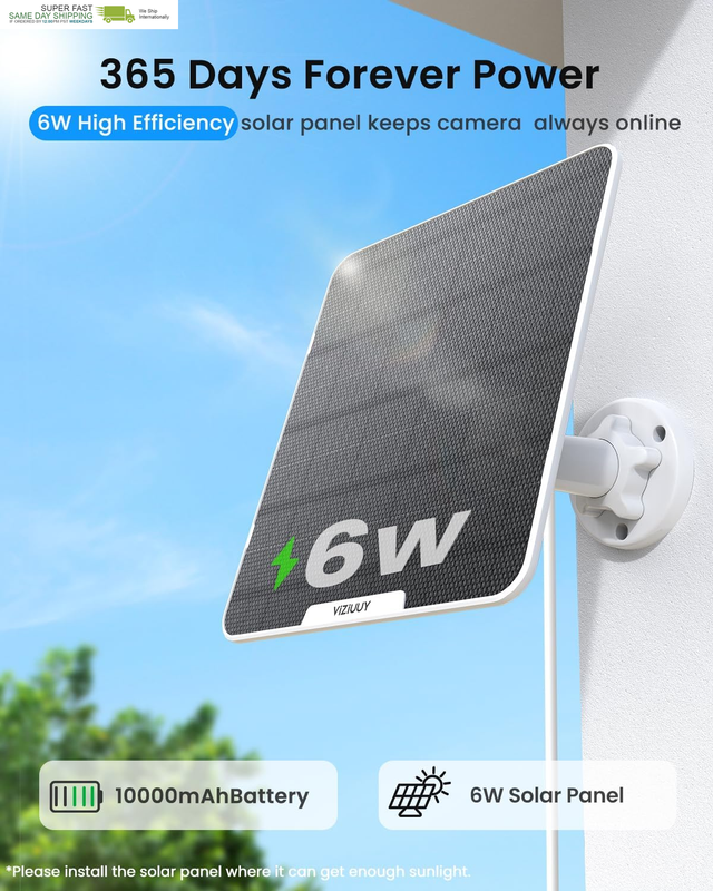 [6W Adjustable Panel Solar Powered] Upgraded 6W solar panel with larger area and faster energy storage spped ensures 365 days of self-sustaining operation with just 2 hours of solar powered charging per day. The VIZIUUY solar camera outdoor wireless with a flexible solar panel and built-in rechargeable battery makes the installation simplified and user-friendly