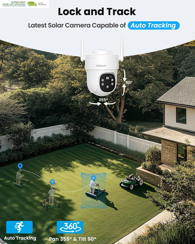 24H Continuous Recording Security Cameras Wireless Outdoor, Wifi 6, 2K Solar-Powered Cameras for Home Security, 360 PTZ, Auto Tracking, 512G Local Storage(Not Include)