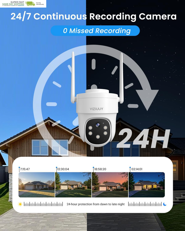 [Always on Video, 24/7 Recording Camera] Different from standard solar security cameras wireless outdoor, the VIZIUUY AOV camera overcomes the traditional limitation of solar powered security cameras that only record when detects moving objects. Powered by AI, VIZIUUY AOV camera switches to high-frame-rate recording at 25fps/s when it detects a person. Otherwise, it will record at a low frame rate (adjustable 7 levels) to achieve 24 hour continuous recording