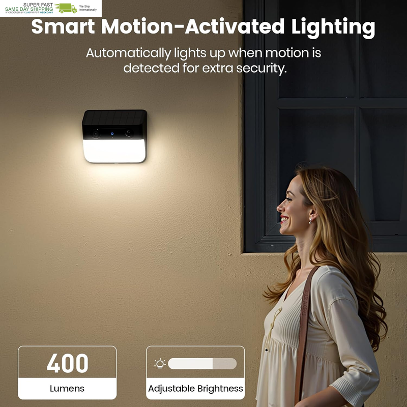 2-in-1 Surveillance and Lighting: The aosu wall light camera seamlessly combines security and lighting. It features a built-in camera to monitor your home and property, along with a 400-lumen wall light that automatically turns on at night?bright enough for safety, yet soft enough not to disturb you or your neighbors. A detachable solar panel offers flexible installation on a variety of outdoor walls so shaded areas are no problem.
