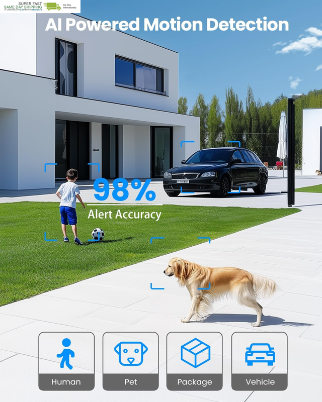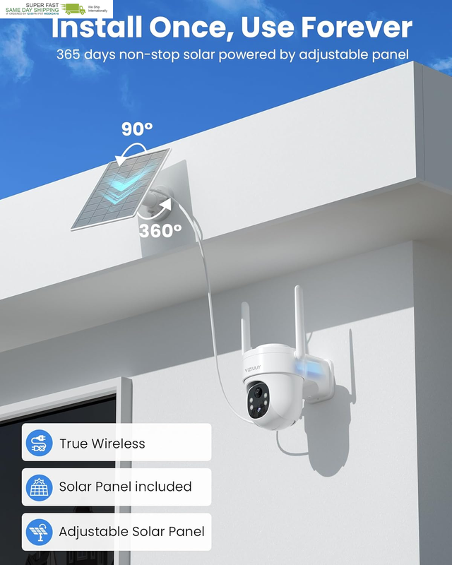 [AI Powered Human Motion Detection Customizable Motion Area] VIZIUUY solar security camera supports human motion detection and can reduce false alarms by up to 90%. Customize the motion area and scheduled alert plan to meet your diverse home security needs and give you peace of mind. We also offer paid features: pet/vehicle/package smart analytics