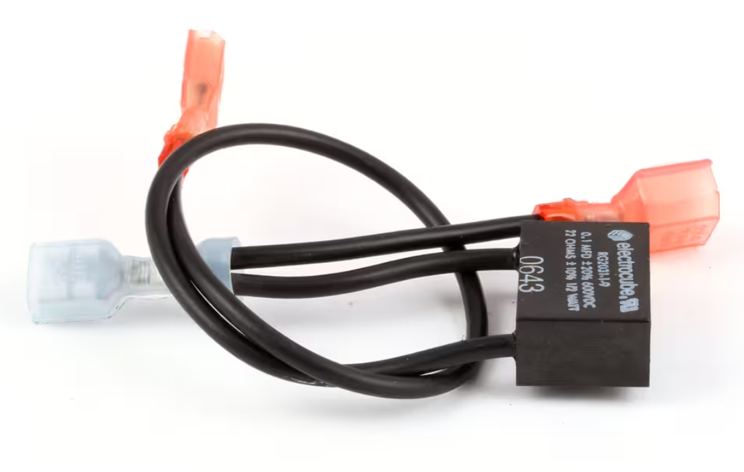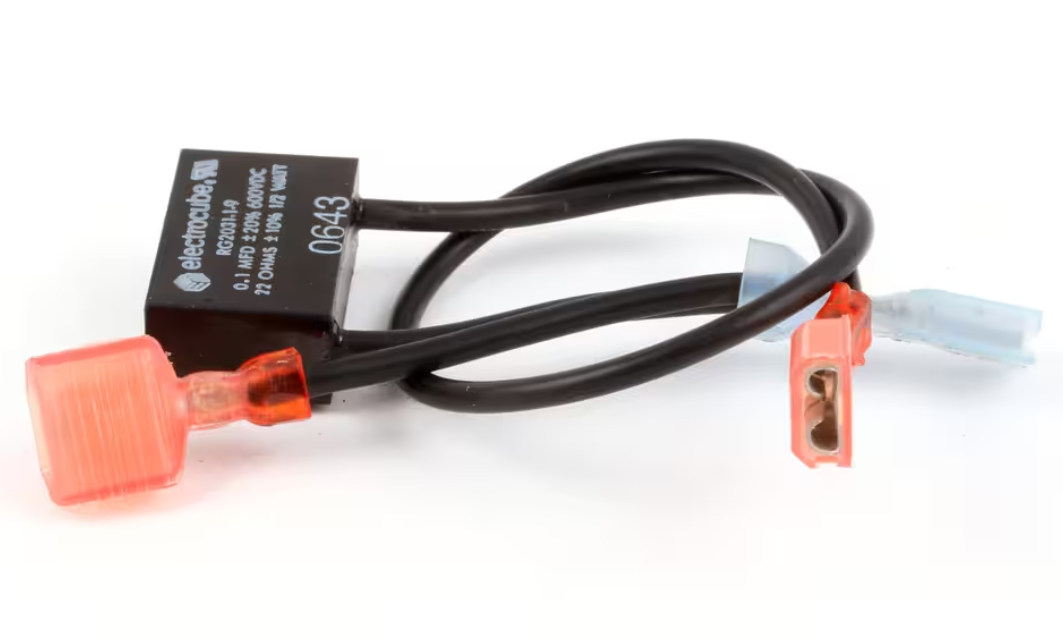 Blodgett RG2031-1-9, 0643 Capacitor Assembly, Snubber is a genuine OEM capacitor/suppressor assembly designed to protect sensitive electrical components in Blodgett commercial ovens. This snubber capacitor helps absorb voltage spikes and suppress electrical noise, ensuring stable operation and extended lifespan of ignition systems and control boards. Built for high-performance cooking environments, it features rugged construction and is fully compatible with select Blodgett convection ovens.