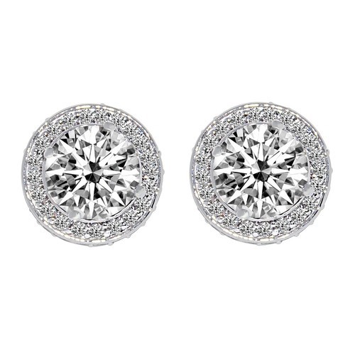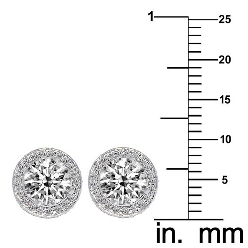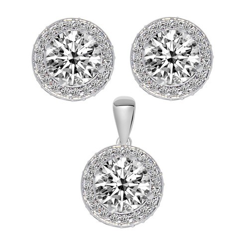 Genuine 14k White Gold Cubic Zirconia Halo Earring Studs and Pendant Gift Set