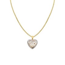 Genuine 14k Two-Tone Gold 0.78" Fancy Cut-out Heart Pendant Necklace 16" to 22"