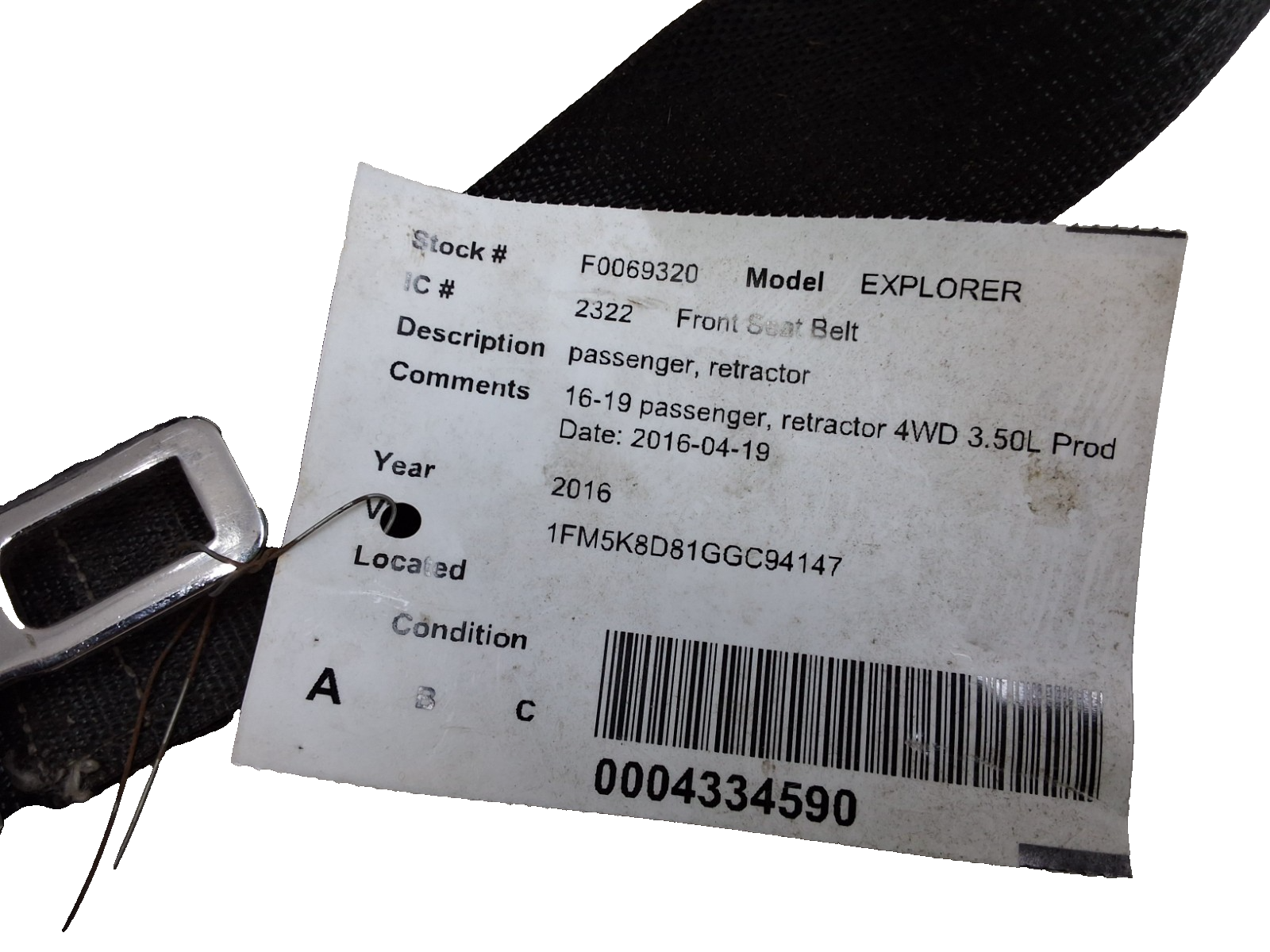 2016 - 2019 Ford explorer right front passenger side black seat belt retractor.
