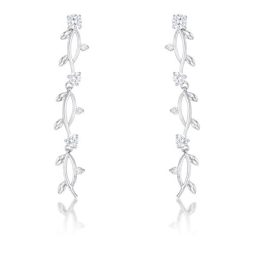 Precious Stars Silvertone Cubic Zirconia Dangling Vine Earrings