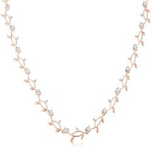Add a touch of natural elegance with this feminine vine necklace. Plated with a warm pink 18k rose gold this beautiful necklace sparkles for a timeless elegant look. Its the perfect bridal necklace and adds effortless style to any formal evening ensemble. Details: