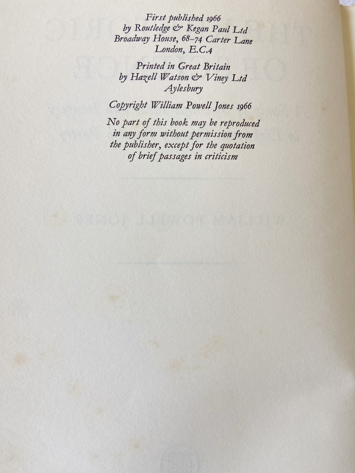 1966 HC The Rhetoric of Science: A study of scientific ideas and imagery in by William Powell Jones eighteenth-century English poetry