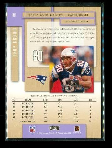 2004 Playoff Prestige Xtra Points Purple /75 Troy Brown #86 New England Patriots